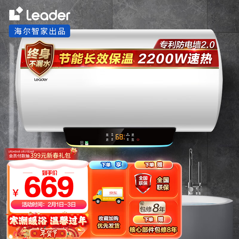 海尔智家出品Leader 50升电热水器家用海尔智家出品 安心浴系列 小尺寸易安装节能 LES50H-LT价格:649.00元!