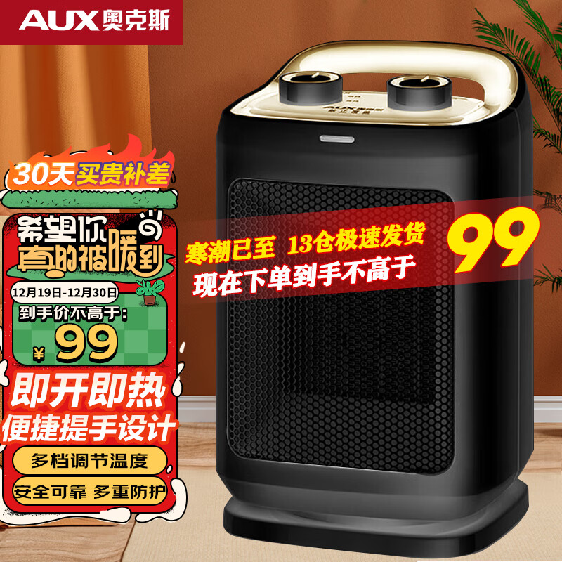 奥克斯(AUX)取暖器/电暖器/电暖气家用/取暖电器/电暖气暖风机 电热扇 电暖炉烤火炉摇头热风机NSBE-150L价格:89.00元!