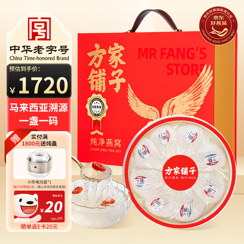 方家铺子 百年老店 坚持利润3% 黑金标S系列6星燕窝礼盒50g 马来西亚溯源干燕窝 年货送礼孕妇滋补营养品价格:2330.00元!
