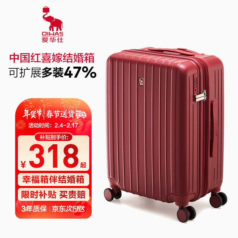 爱华仕行李箱20英寸拉杆箱女小型陪嫁旅行箱登机箱充电皮箱密码箱中国红价格:318.00元!