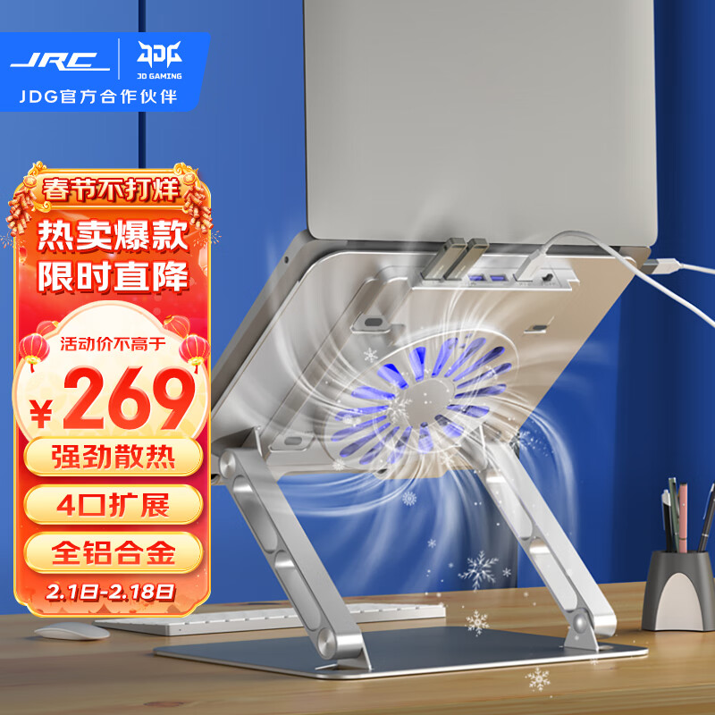 极川(JRC)笔记本电脑支架散热器 带USB分线器HUB扩展 苹果Mac联想拯救者华为升降悬空立式增高架铝合金价格:269.00元!