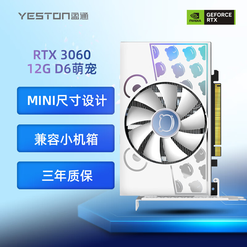 盈通(yeston)GeForce RTX3060-12G D6 萌宠 1320-1777MHz 电竞游戏光追独立显卡价格:2249.00元!