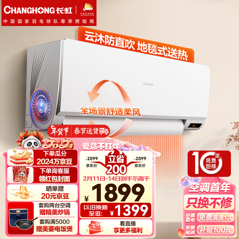 长虹(CHANGHONG)1.5匹新能效 变频冷暖 舒适防直吹技术 壁挂式卧室空调挂机 KFR-35GW/ZDAYW1+R3以旧换新价格:1899.00元!
