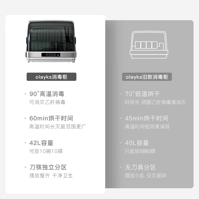 olayks消毒柜 台式消毒碗柜 家用保洁柜 迷你小型碗筷刀架高温消毒烘干柜42L价格:399.00元!