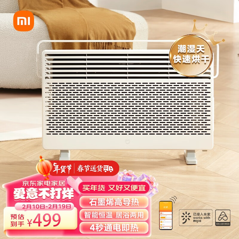 米家 小米石墨烯智能取暖器 取暖器干衣/欧式快热炉/电暖气片 远红外共振加热 IPX4级防水居浴两用价格:499.00元!