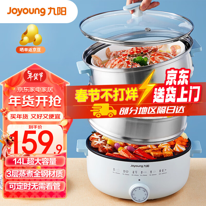 九阳(Joyoung)14L三层大容量1500W大功率多用途锅多功能家用电火锅电煮锅电热锅电蒸锅年货送长辈送老人GZ158价格:149.00元!