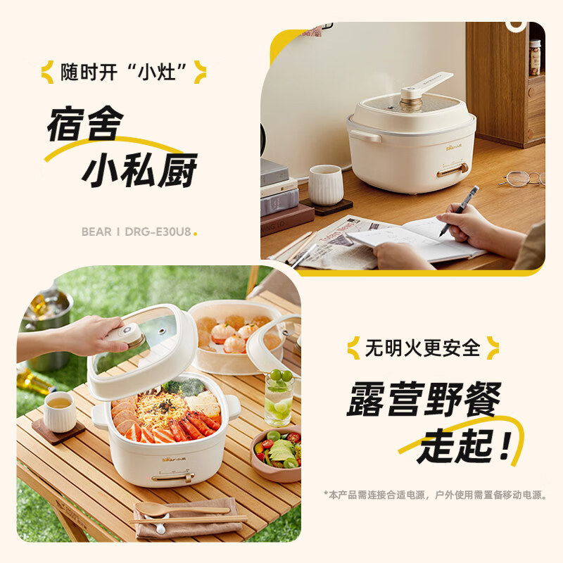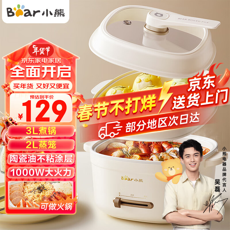 小熊(Bear)电煮锅 泡面火锅宿舍小电锅 多功能多用途电热锅 3L蒸煮一体蒸屉蒸笼电蒸锅 DRG-E30U8价格:129.00元!