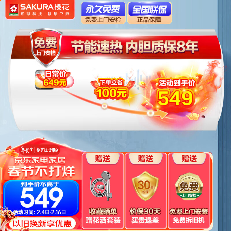 樱花(SAKURA)40升电热水器 速热大水量 家用储水式热水器 大功率节能保温 SHW-40QY05价格:549.00元!