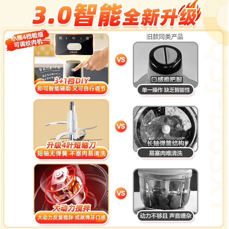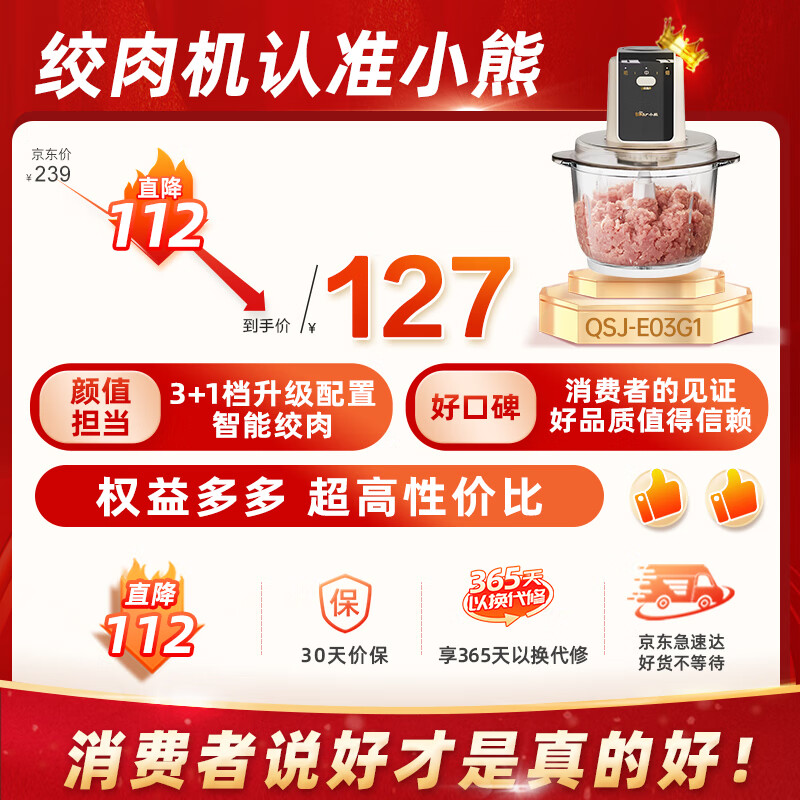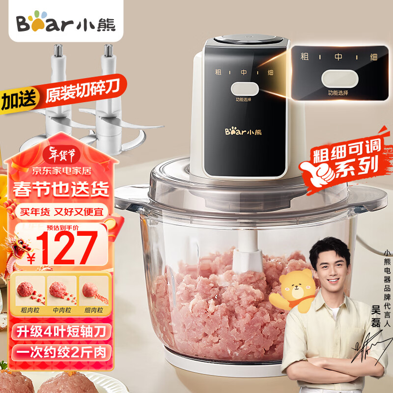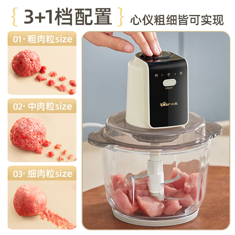 小熊(Bear)绞肉机家用 绞馅机 碎肉机 电动多功能料理搅拌打肉机饺子肉馅蒜蓉机 可调粗细搅肉机QSJ-E03G1 2L价格:127.00元!