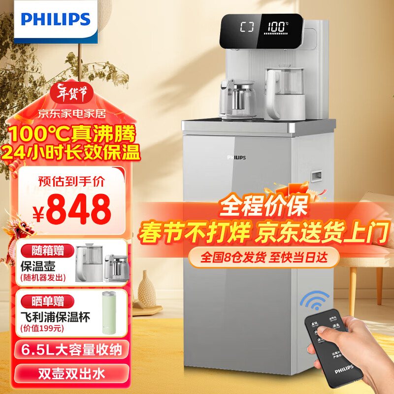 飞利浦(PHILIPS) 茶吧机 立式饮水机全自动智能下置水桶办公室家用饮水机 加热调温遥控自动上水 ADD4888价格:942.00元!