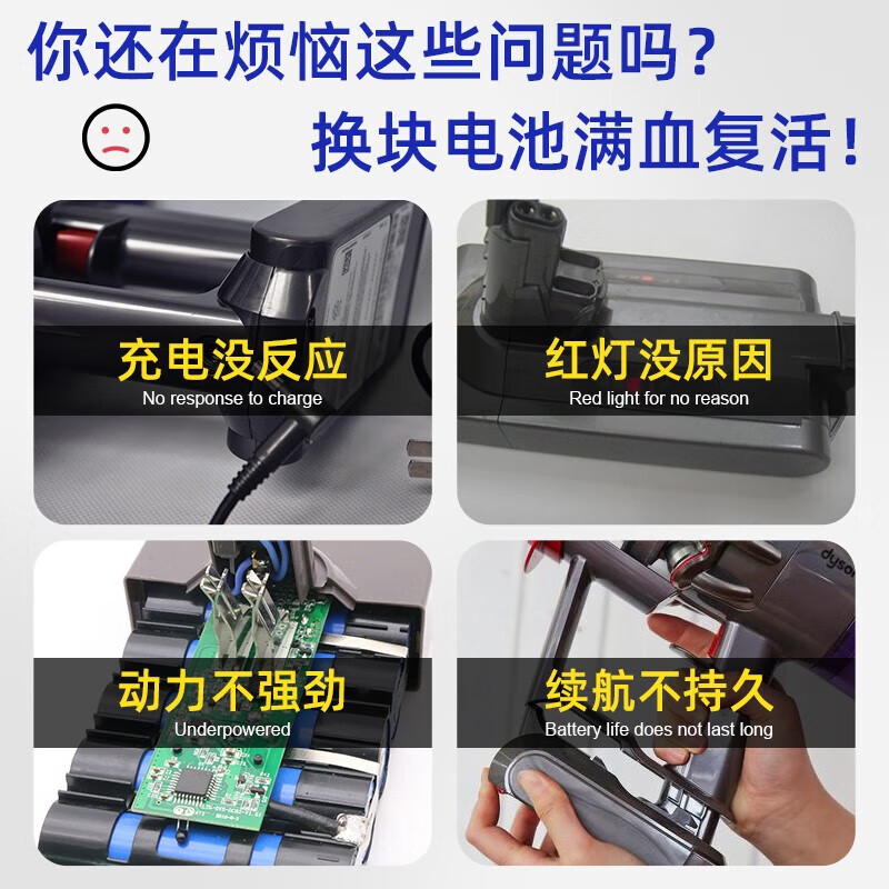 芬朗 适用戴森Dyson电池V7吸尘器可充电锂电池进口电芯长续航不虚标 容量升级21700价格:308.00元!