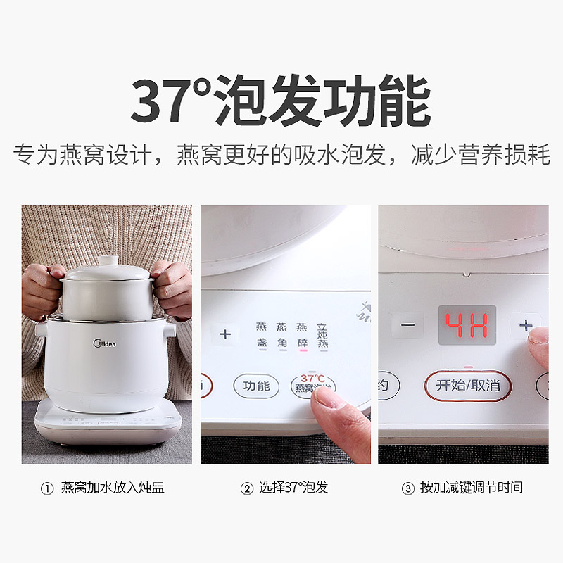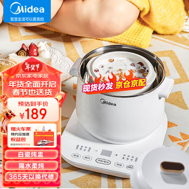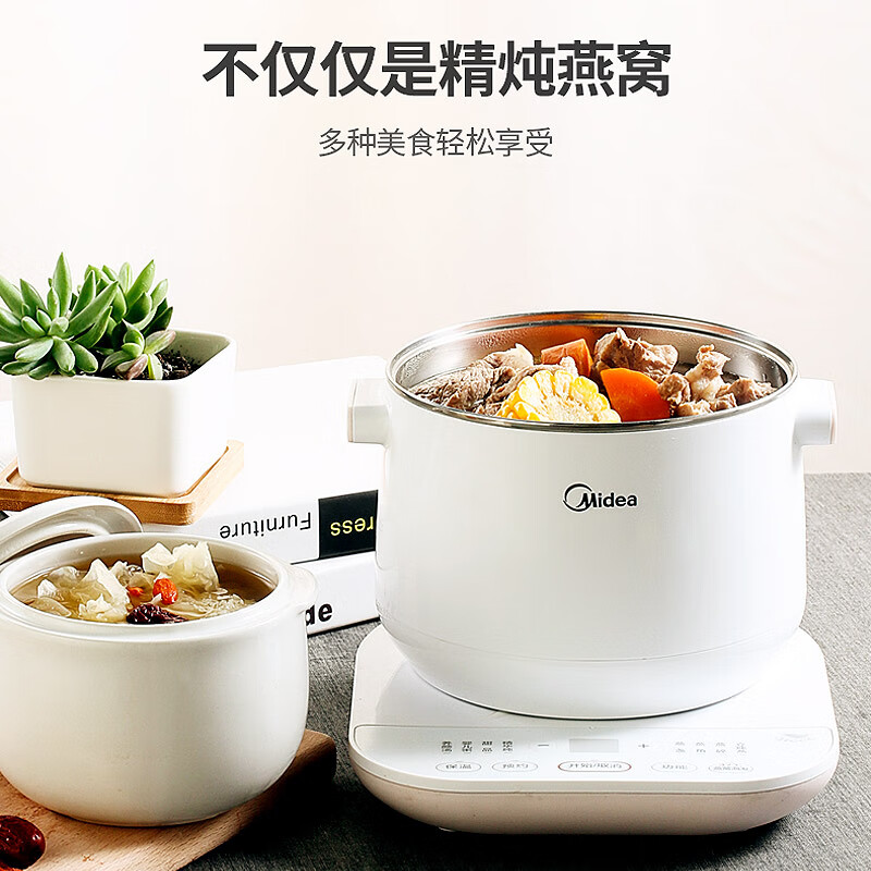 美的(Midea)电炖锅 燕窝炖盅煮粥隔水炖 0.8L 陶瓷内胆煲汤养生BB煲 智能预约 WBZS0801F 以旧换新价格:189.00元!