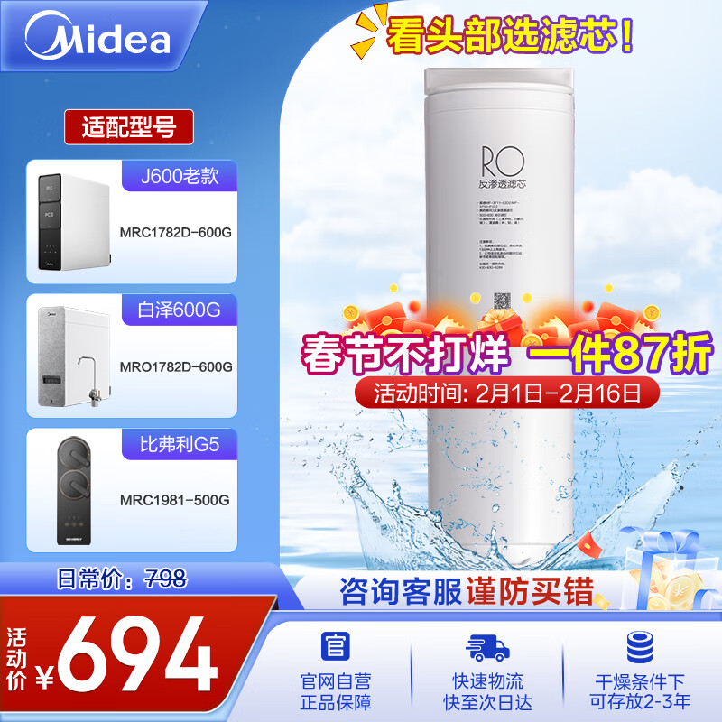 美的净水器滤芯—适用MRC1782D-600G老款 、MRO1782D-600G、MRC1981-500G 净水机-Best双芯系列-RO滤芯价格:694.00元!