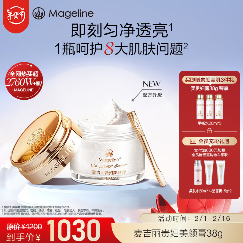 麦吉丽(Mageline)贵妇美颜膏38g素颜霜遮瑕抗皱补水保湿紧致肌肤价格:1030.00元!