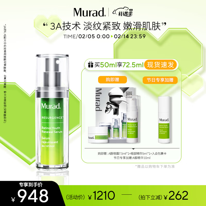 Murad【檀健次同款】慕拉得视黄醇A醇精华50ml精华液早C晚A新年礼物价格:1210.00元!