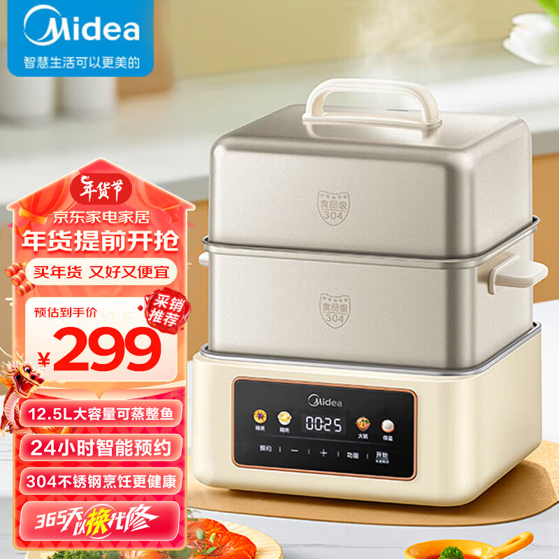 美的(Midea)电蒸锅 电煮锅电火锅 火锅多功能锅家用蒸包子锅 电热锅多用途锅24小时预约双层蒸笼MZ-ZGC262388价格:329.00元!