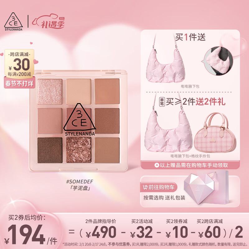 3CE九宫格九色眼影九宫格微微烟紫SOMEDEF芋泥盘新年情人节礼物价格:229.00元!
