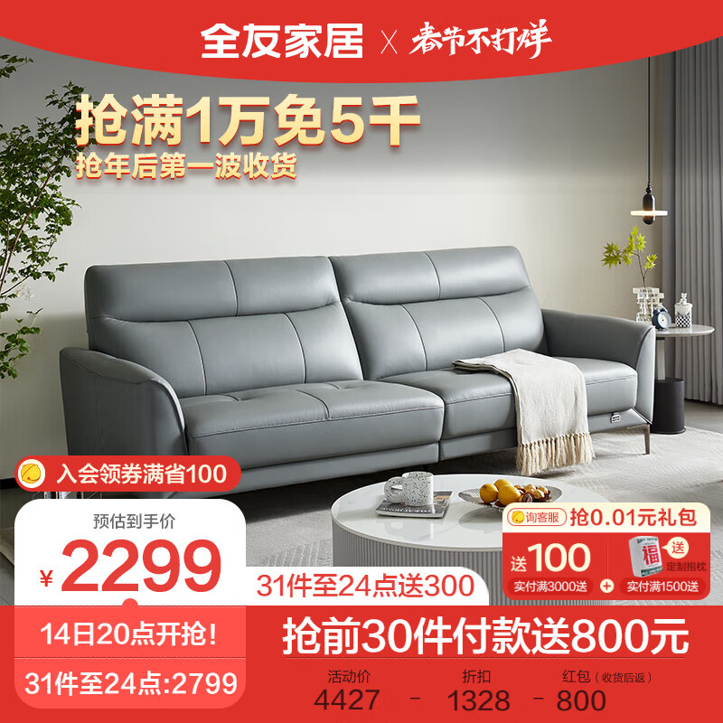 全友家居 真皮沙发 现代简约大小户型头层黄牛皮沙发客厅家具102710B价格:4427.14元!