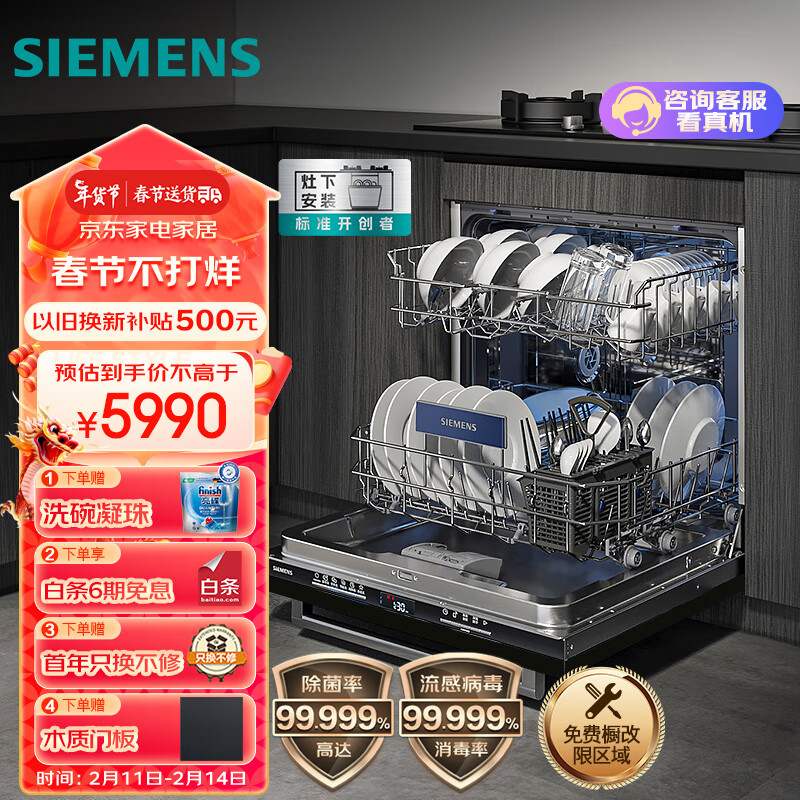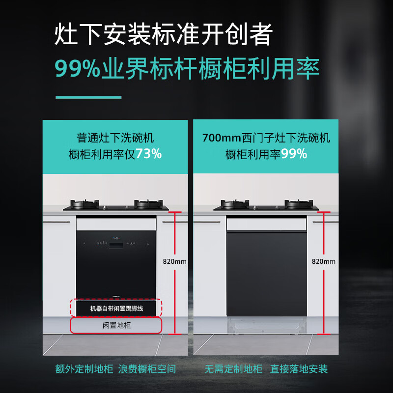 西门子12套灶下大内腔洗碗机嵌入式 除菌消毒一体 一级水效 三重烘干 高700mm SE63HB66KC(黑门板)价格:5990.00元!