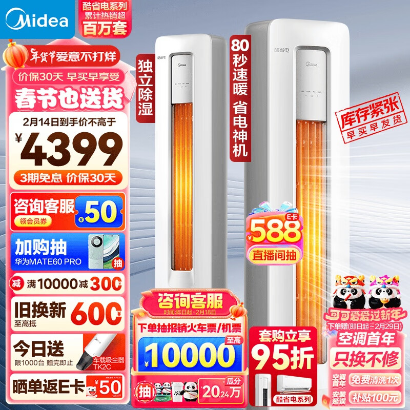 美的(Midea)空调 2匹 酷省电 三级能效 变频冷暖 空调立式 客厅空调柜机 智能家电 独立除湿 KFR-51LW/N8KS1-3价格:4399.00元!