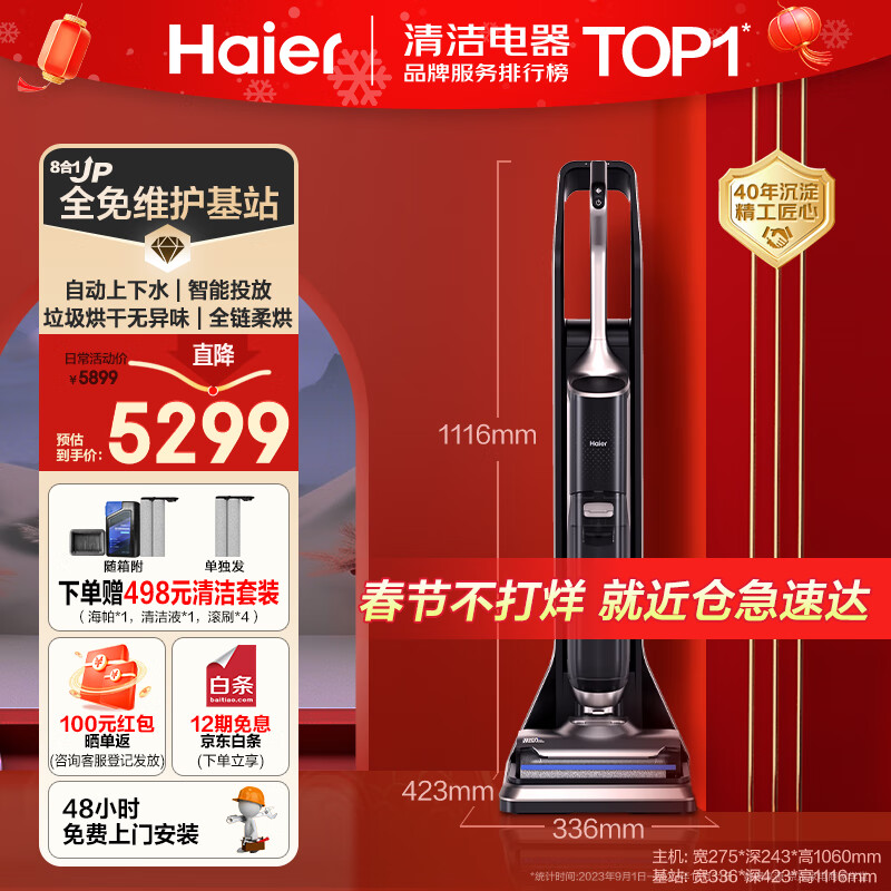 海尔(Haier)无线智能家用洗地机吸洗拖一体自动清洗全自动拖地机扫地机器人自动上下水无尘X11station基站款价格:5599.00元!