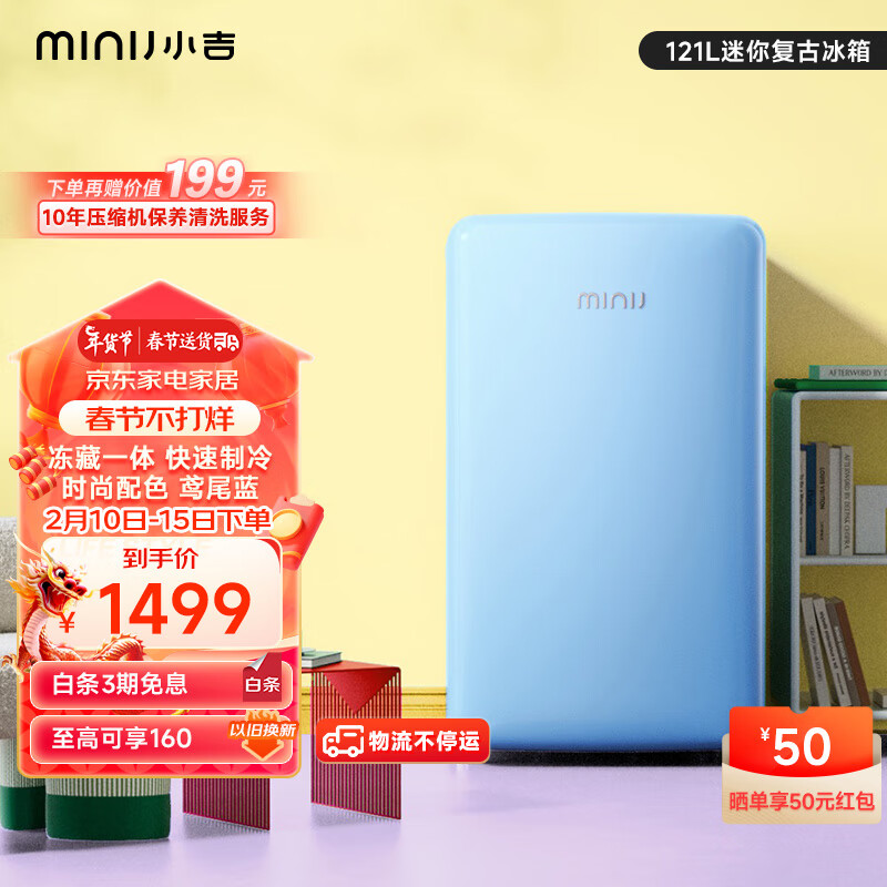 小吉(MINIJ)迷你复古色彩系小冰箱 冷冻冷藏一体 租房宿冰箱小型家用舍办公室节能低噪客厅冰箱 BC-121FA价格:1499.00元!