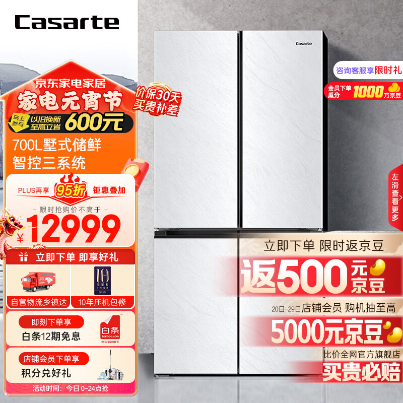 卡萨帝(Casarte)700升原石冰极岩十字四开门双开门白色高端大容量电冰箱一级能效变频家用BCD-700WGCTDM7WYU1价格:12999.00元!