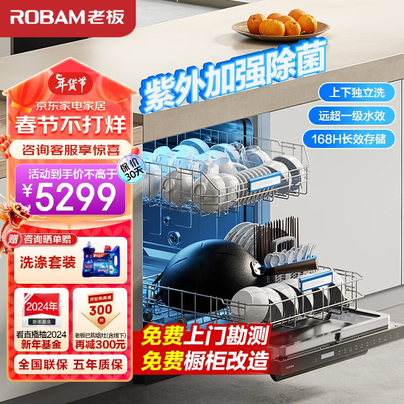 老板(Robam)F30X-黑13套嵌入式去重油污洗碗机家用热风烘干消杀168h长效存储紫外加强除菌一体机独立式分层洗价格:5299.00元!