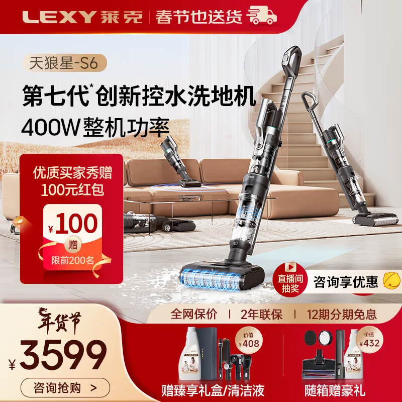 莱克洗地机天狼星S6智能多功能洗地吸尘器家用吸尘除螨扫地机三合一无线洗拖机吸扫洗拖一体机自动清洗价格:3599.00元!