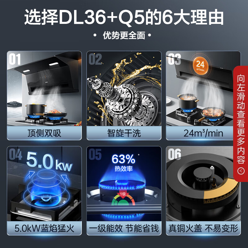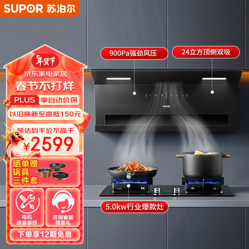 苏泊尔(SUPOR)抽油烟机 顶侧双吸变频油烟机灶具套装 24立方吸力烟灶套装 家用油烟机燃气灶套装 DL36+Q5液化气价格:2699.00元!