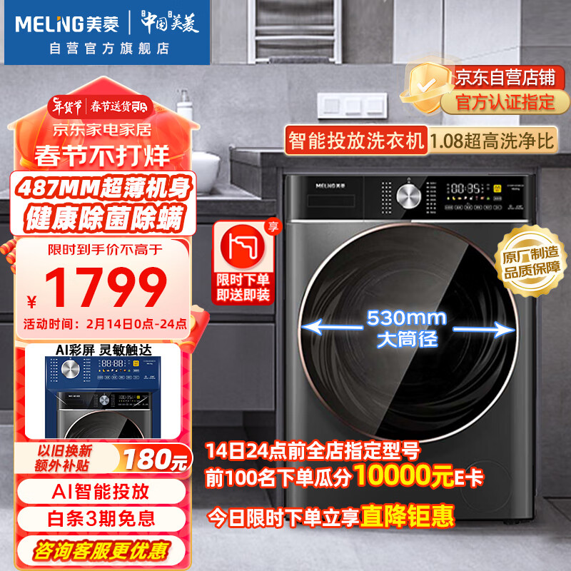 美菱(MELING)10公斤【超薄】滚筒全自动变频洗衣机巴氏除菌高温除螨洗一级能效 G100M14559BCZX价格:1799.00元!