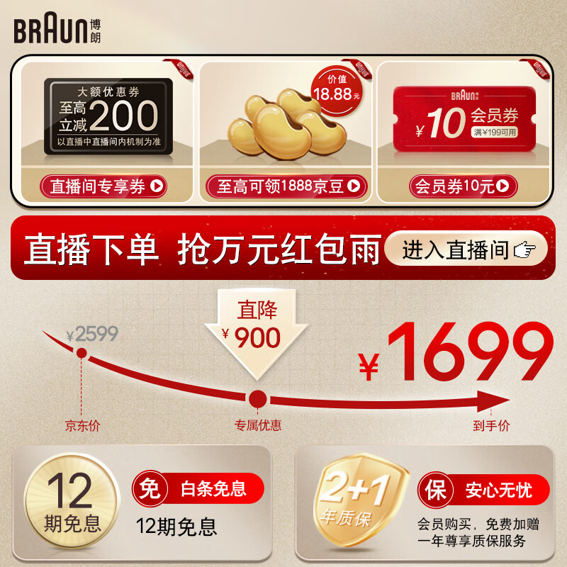 博朗(BRAUN)尊享9系Pro动剃须刀整机德国进口往复式剃须刀刮胡刀男士男朋友生日礼物送老公新年礼物送男友价格:1698.00元!