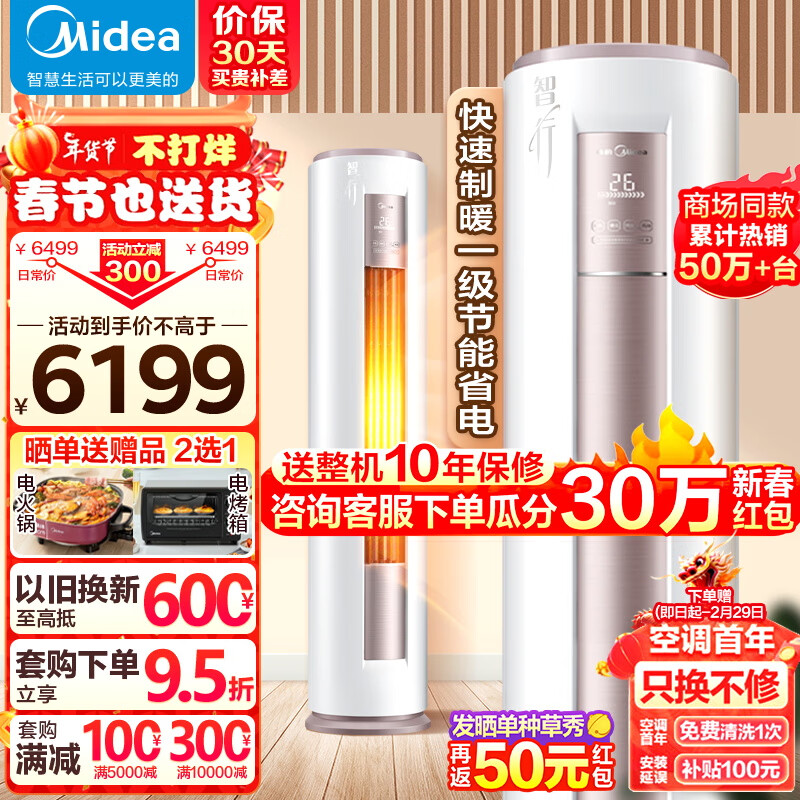 美的(Midea)空调 3匹智行 新一级能效变频冷暖 智能家电 客厅立式空调柜机 KFR-72LW/BDN8Y-YH200(1)A价格:6199.00元!