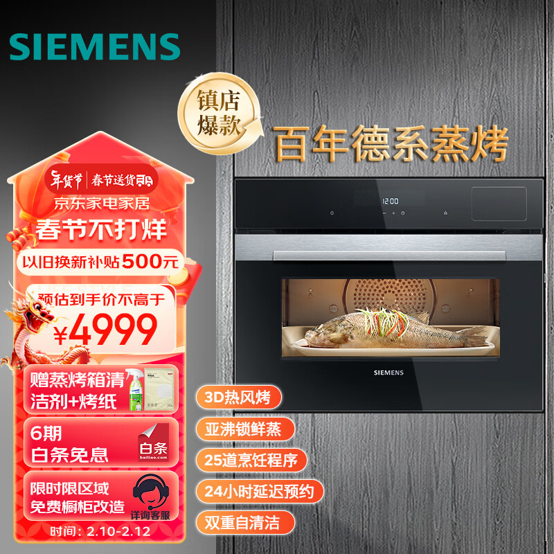 西门子(SIEMENS)嵌入式蒸烤箱一体机烤箱蒸箱 智能家用蒸烤一体机 45L 大容量CS389ABS0W高45.5CM价格:5199.00元!