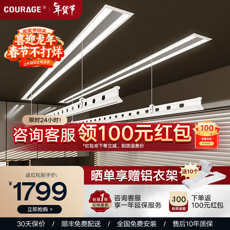 卡瑞琪(COURAGE)电动晾衣架隐形阳台家用隐藏式晾衣架多功能晾衣杆双杆 米家2.4米价格:2899.00元!