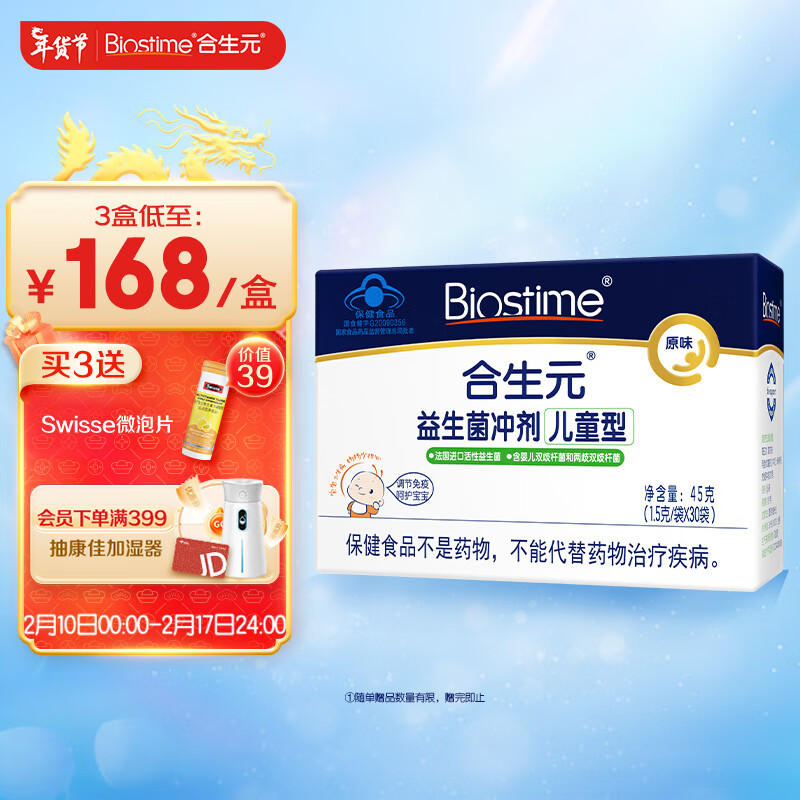 合生元(BIOSTIME)儿童益生菌冲剂(益生元)原味30袋盒装(宝宝可用 活性益生菌)过年送礼价格:248.00元!