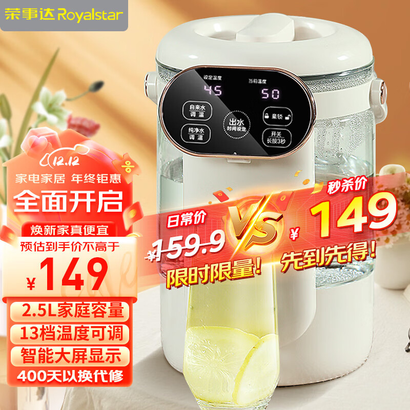 荣事达电热水瓶即热水壶恒温水壶电水壶开水瓶防烫除氯304不锈钢家用办公13段智能保温2.5L烧水壶RP-J25B价格:149.00元!