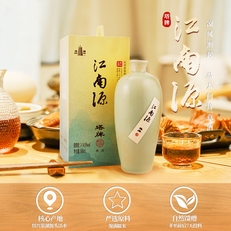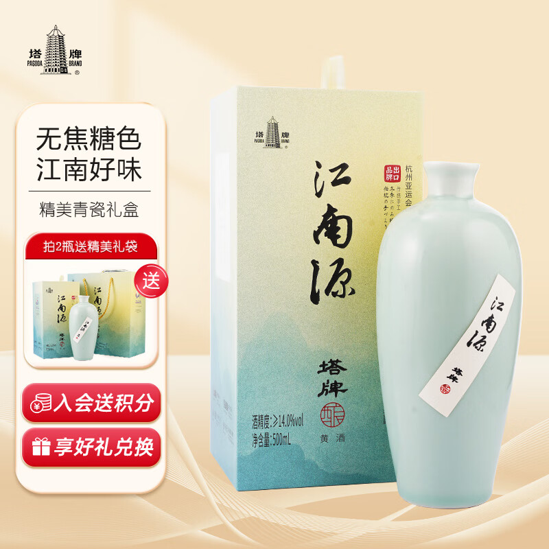 塔牌 江南源 半干型 绍兴黄酒 500ml 单瓶礼盒装 无焦糖色价格:138.00元!