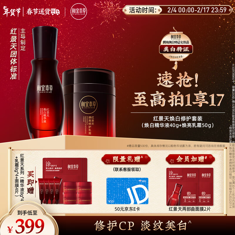 相宜本草红景天焕白修护礼盒套装(修护霜50g+精华液40g)送女友送老婆价格:399.00元!