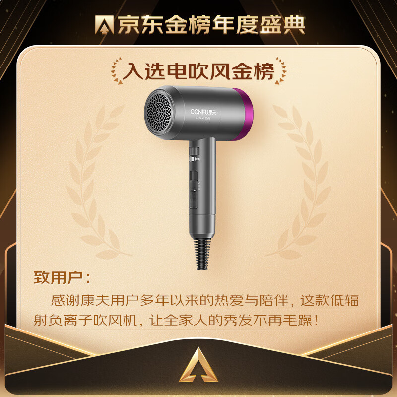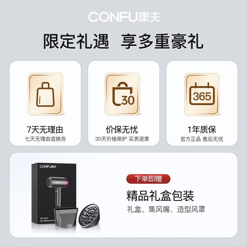 康夫(CONFU)电吹风机家用生日礼物大功率低辐射负离子护发孕妇速干送女友吹风筒 KF-3127价格:199.00元!