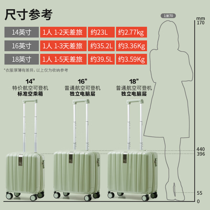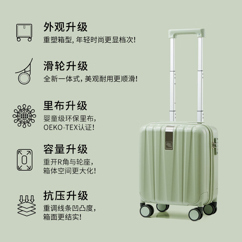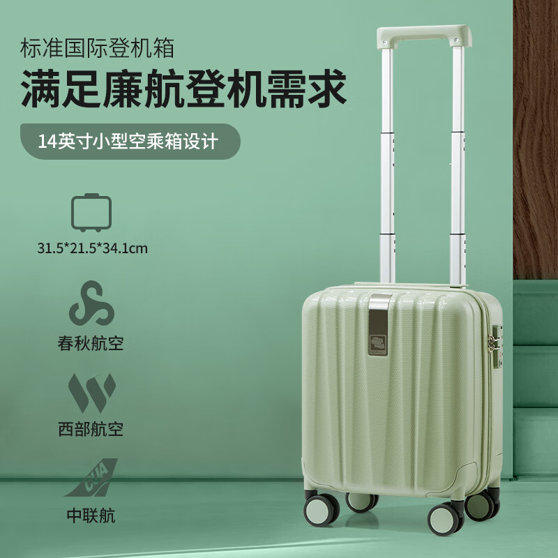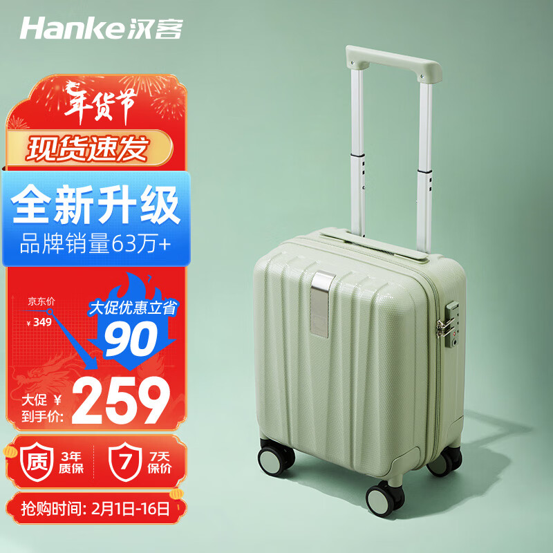 汉客行李箱男拉杆箱女登机旅行箱14英寸青竹绿密码箱镇店之宝再次升级价格:349.00元!