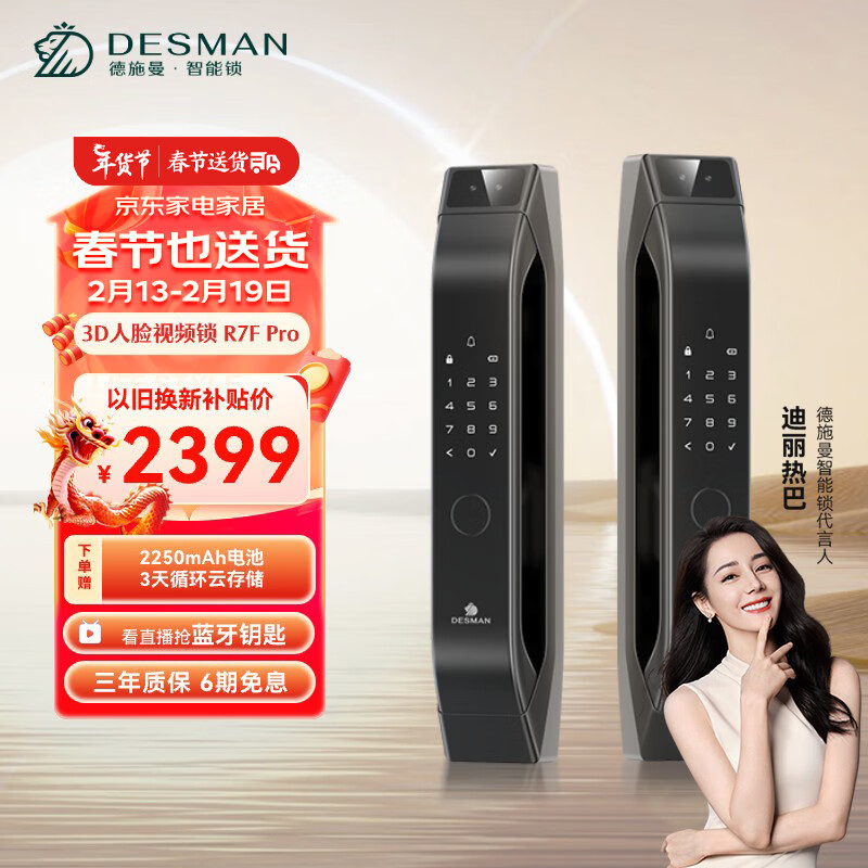 德施曼(DESMAN)3D人脸智能门锁 密码门禁防盗指纹锁 可视频猫眼带摄像头R7FPro黑价格:2699.00元!