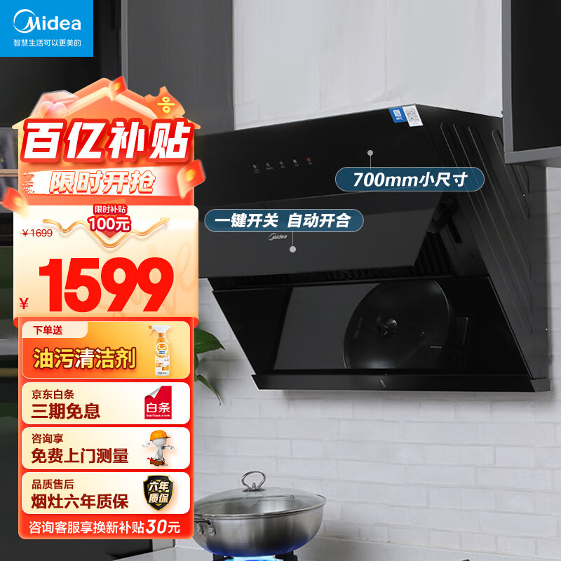 美的(Midea)抽油烟机家用小户型700小尺寸侧吸式抽烟机大吸力脱排油烟机抽烟机CXW-280-J27价格:1599.00元!