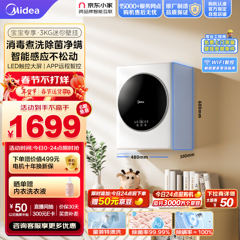 美的(Midea)壁挂洗衣机 MG30MINI 3公斤 迷你滚筒洗衣机全自动 儿童洗衣机 婴儿洗衣机小型 挂壁式洗衣机价格:1699.00元!