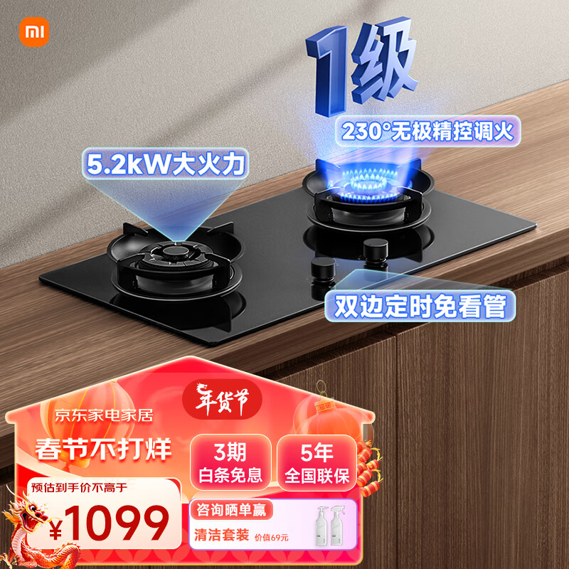 米家小米燃气灶S1天然气灶具双灶家用5.2kW猛火 智能双边定时 底座可调节JZT-MJ04CY价格:1099.00元!