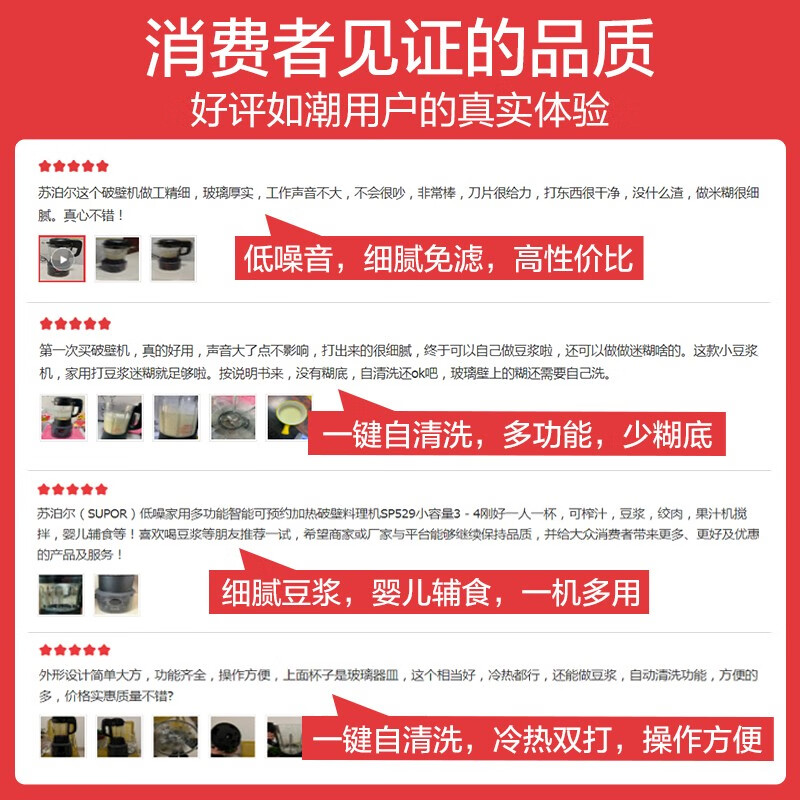 苏泊尔(SUPOR)破壁机 家用2-3人多功能豆浆机 预约加热榨汁机果汁机搅拌机料理机辅食机SP529价格:249.00元!
