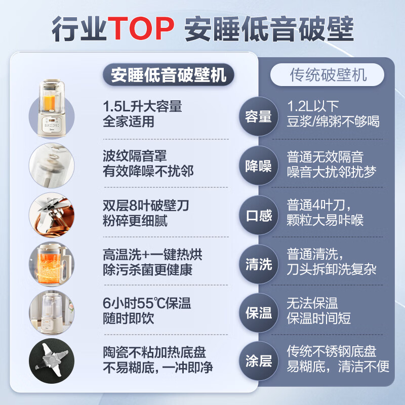 美的(Midea)安睡Pro低音1.5升破壁机家用豆浆机柔音降噪设计榨汁料理辅食机MJ-PB4G3-555价格:379.00元!