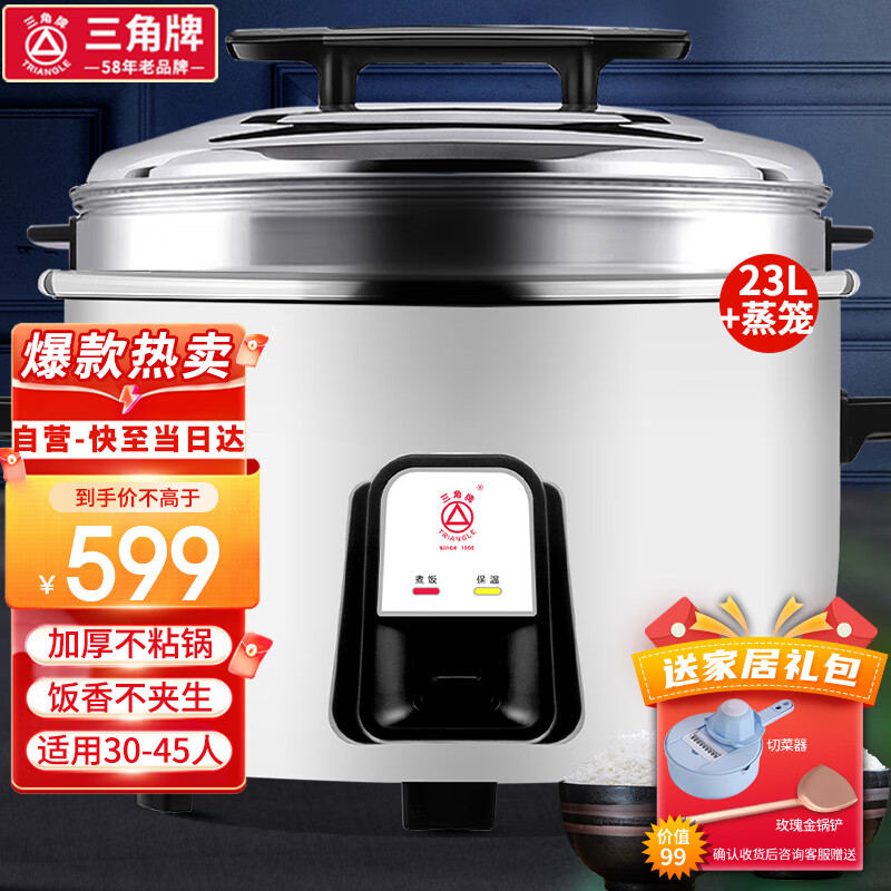 三角牌(Triangle)商用电饭煲 大容量电饭锅食堂大电饭煲酒店饭店大型超大蒸饭锅 23升+蒸笼 30-45人适用价格:599.00元!
