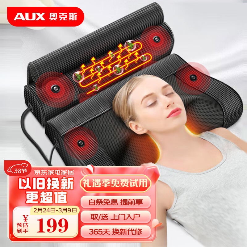 奥克斯(AUX)颈椎按摩器头部肩颈护颈仪热敷款按摩枕背部腰部按摩仪枕头靠垫颈椎枕GL-2Z 送爱人 礼物价格:229.00元!