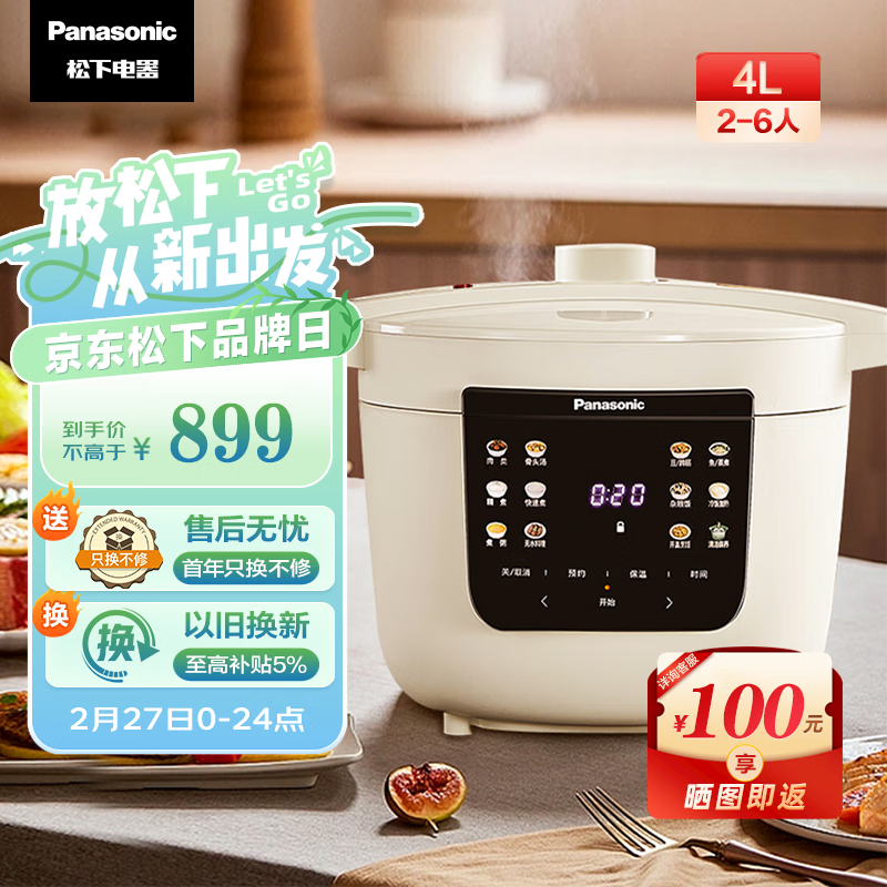 松下(Panasonic)4L电锅 焗鲜锅 开盖火锅料理 智能高压锅电饭锅 24h人性化预约 NF-PC401-L价格:759.00元!